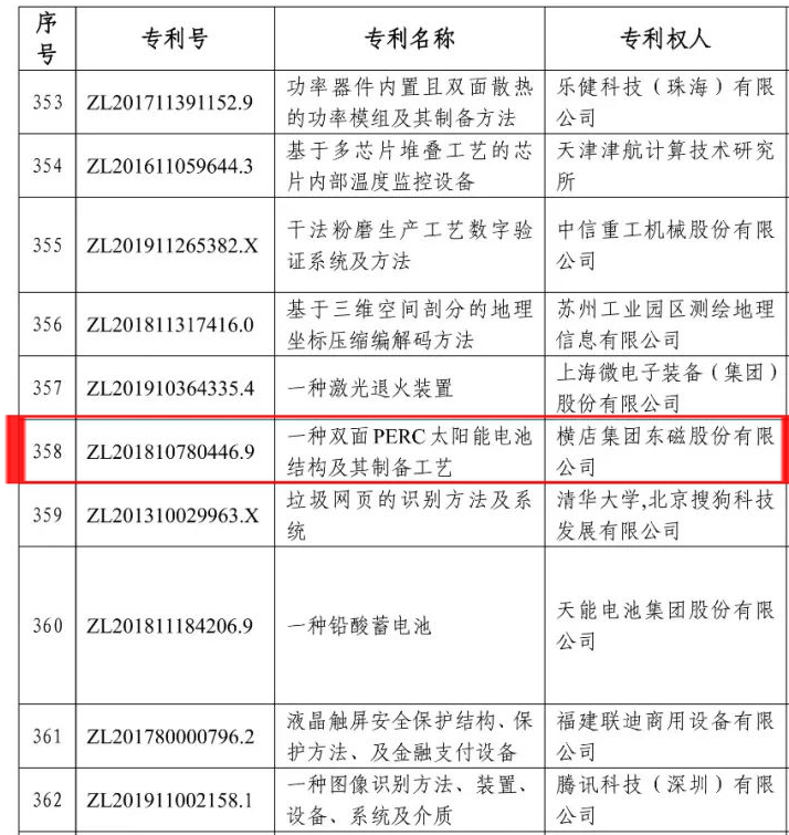 日前,第二十三届中国专利奖名单出炉,横店东磁发明专利《一种双面PERC太阳能电池结构及其制备工艺》获得优秀奖。